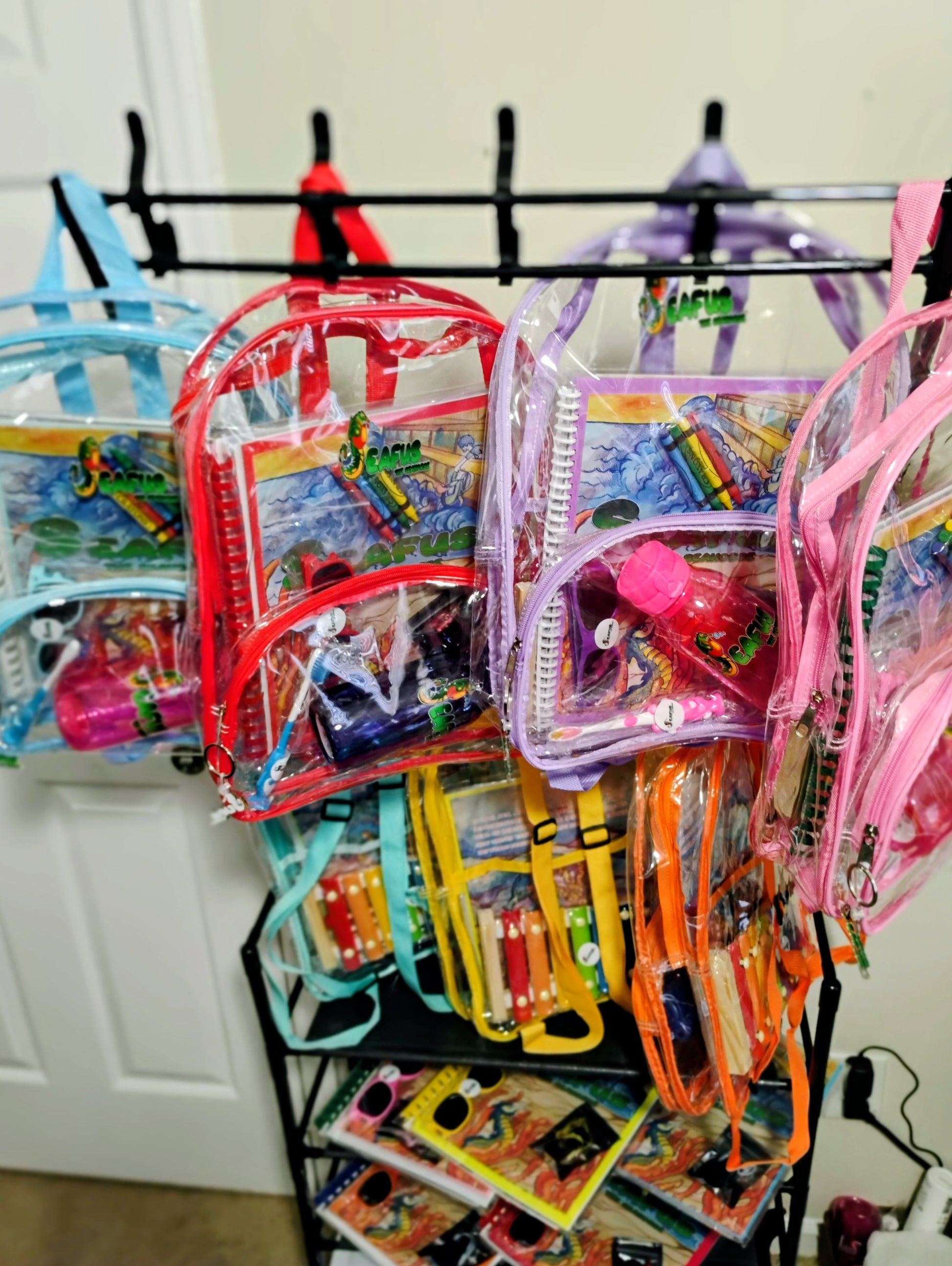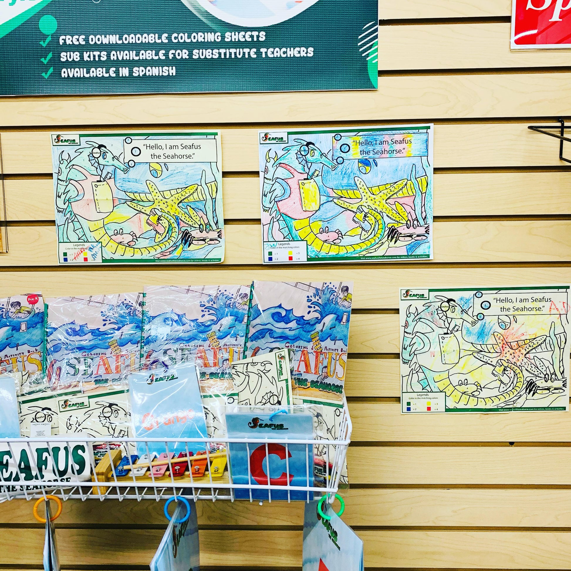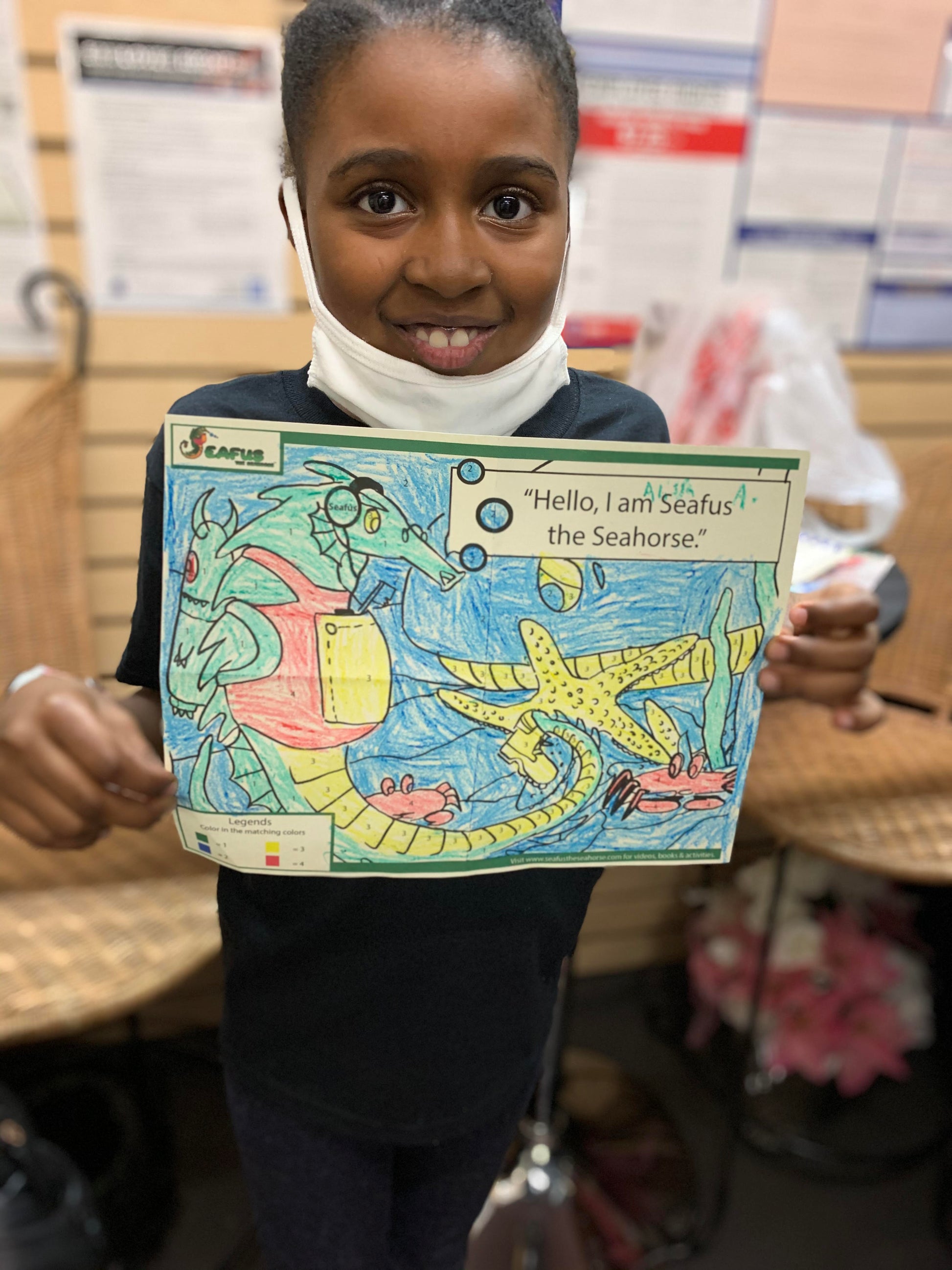 Seafus the Seahorse swag pack includes (1) Illustrated ,custom-handcrafted board reading, coloring & activity book ,(1) exclusive Seafus the Seahorse sing -along video; uploaded on a colorful usb that matches the book,(1) Exclusive Dramatized Voice Over for Seafus the Seahorse( Story time with Tasha Renee') uploaded on the same USB ;with extra storage space, (1) Seafus the Seahorse tumbler, (1) pack of crayons that will be needed for your child's coloring experience, (1) Seafus the seahorse custom keychain for zipper on the swag pack, one wooden xylophone musical instrument with mallets for kids: WARNING:CHOKING HAZARD Small parts. Not for children under 3 yrs. ,(1) pair of cool-neon signature Seafus-Bans/sunglasses to match your kids book, 1 bright colored -soft kids toothbrush for toddlers to promote healthy teeth, (1) "I am Seafus the Seahorse friend" random color pic for kids t-shirt (be sure to select your kids t-shirt size), (1) 16inch Seafus custom Swag Back-Pack (color pick random) and a set of special instructions on how to care for your kids book. All for a loaded value of $59.99 compared to $99.99. This book is unique and makes learning fun and easy for our babies. They are also great educational books and are great for family bonding time, bedtime stories, kid's parties, daycares, pre-schools, homeschooling, teachers, and so much more. Seafus the Seahorse is way more than a book. Adult supervision is required for kids under 7 years old. Seafus the Seahorse is ready to make new Friends!
